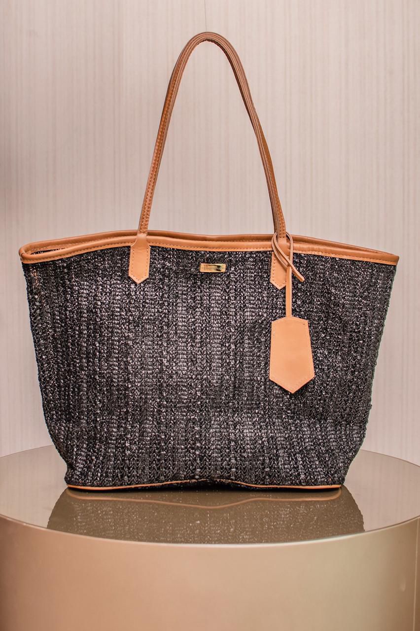 Bag aberta de palha natural, com feche de lagosta e com alça de couro.