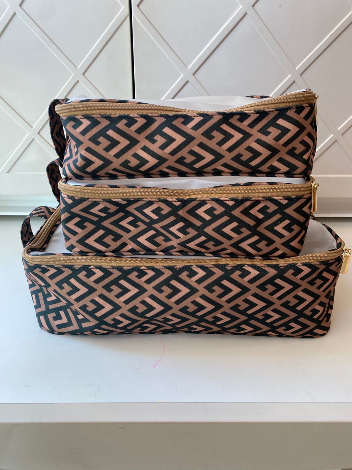 Kit de organizadores para viagem com estampa exclusiva  com 3 peças bordadas as iniciais.